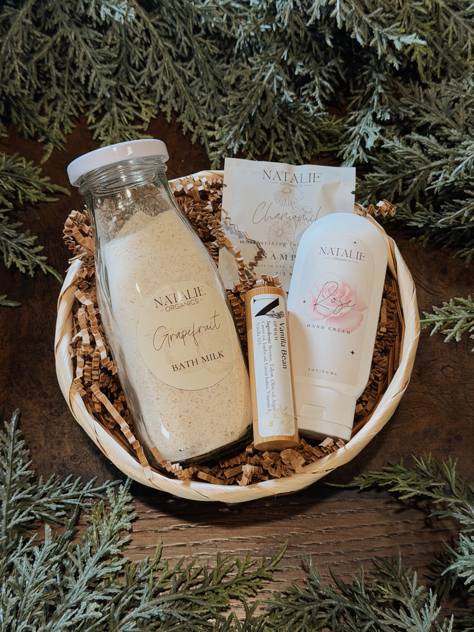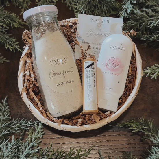 A simple self-care gift featuring our nourishing bath milk, everyday lotion, and moisturizing lip balm. Easy, thoughtful, and perfect for anyone.