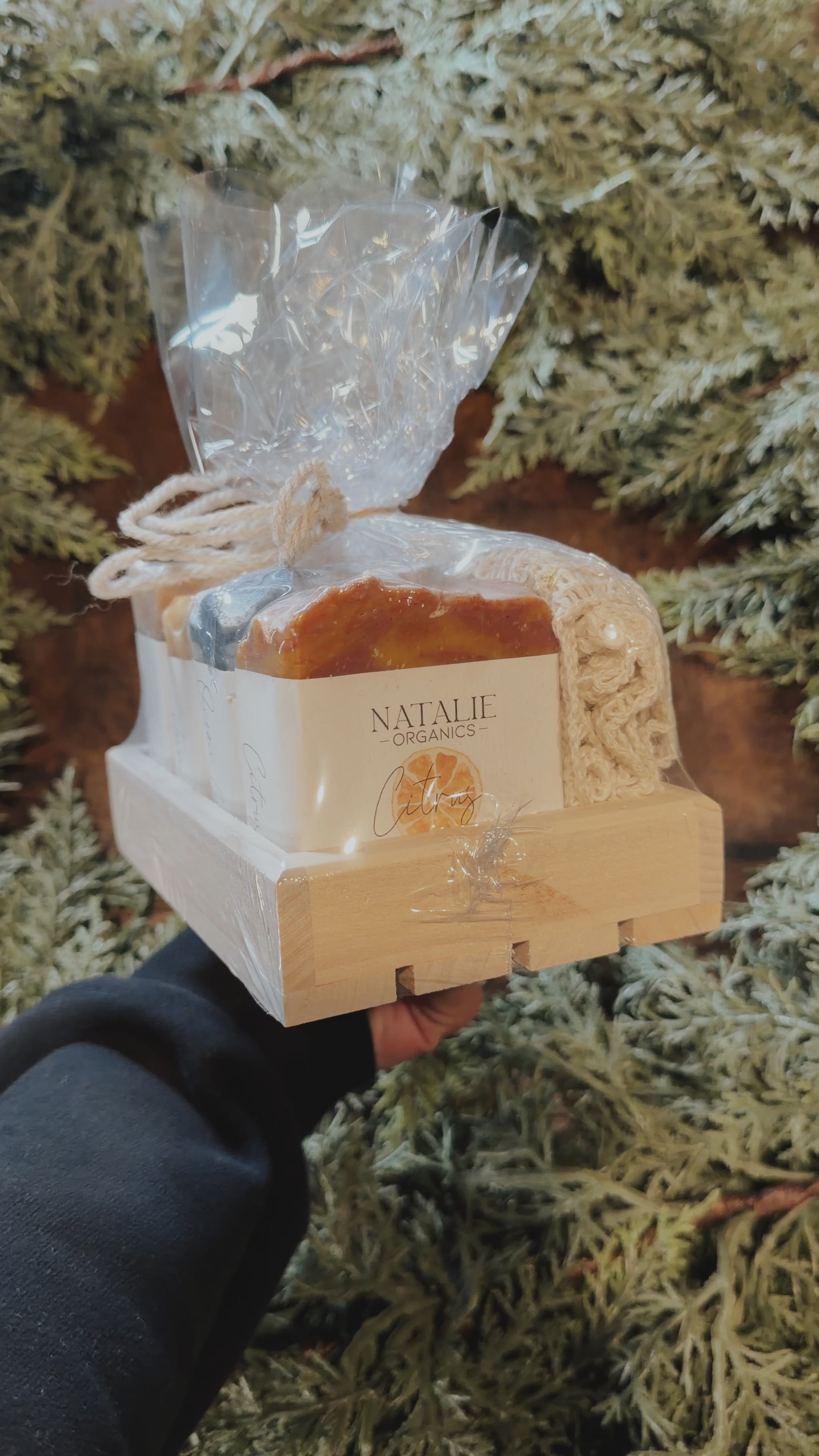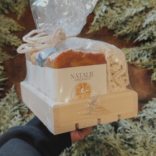 Includes: 4 Artisan Soaps • Wooden Crate • Soap Wash Cloth
